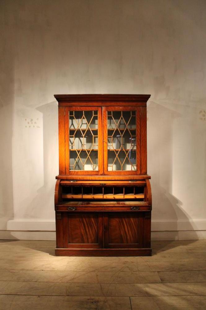 Victorian Mahogany 'Cilinder' secretaire bookcase